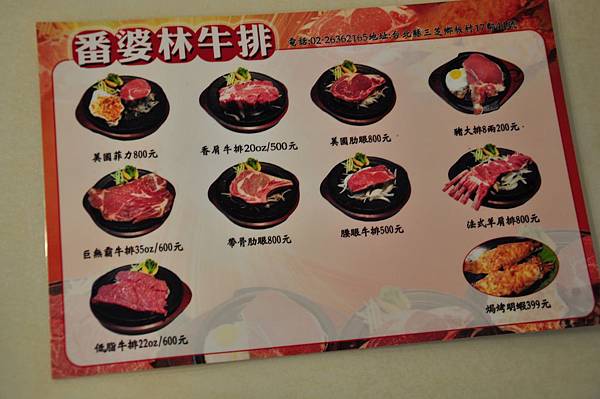 這裡的餐點,從最便宜50元的鐵板麵、100元的牛豬雞排到600元的巨無霸牛排,全部任君挑選。