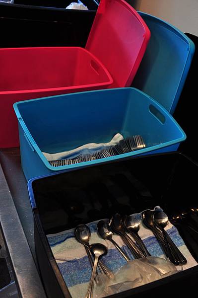 在入口的左邊,擺著刀叉及湯匙,供食客自行取用。