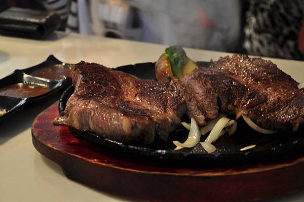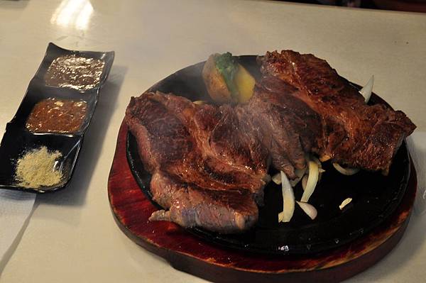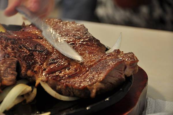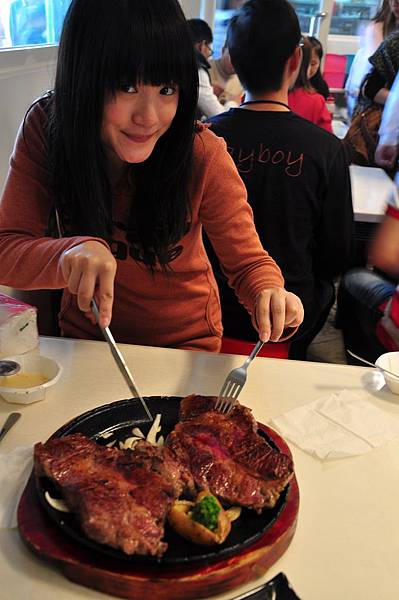 經過一行人不斷拍照後,我們就要開始來享用這塊超大牛排啦。
