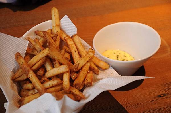 在薯條一旁的醬料,是微甜中帶點芥末的蜂蜜芥末醬。