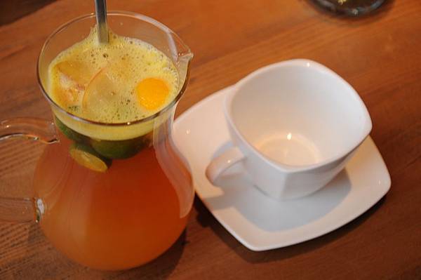 在普通不過的水果茶,在茶的上頭飄浮著金桔檸檬。