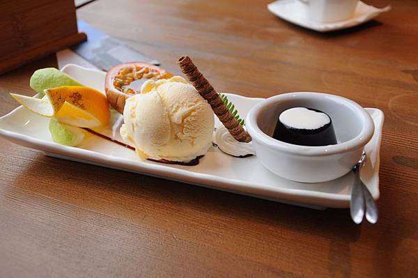 最後一道甜點,帶有一層鮮奶的仙草凍,在此姑且稱它為仙草奶凍。