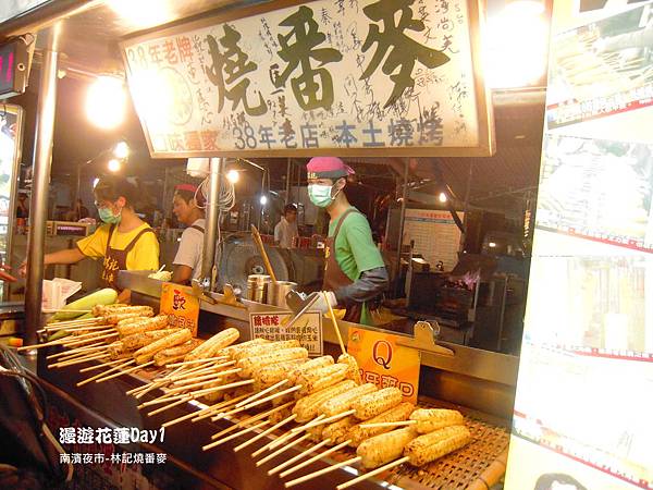 不過在一片娛樂性的擺攤中,仍以美食打響名號的,是這間烤玉米【林記燒番麥】。