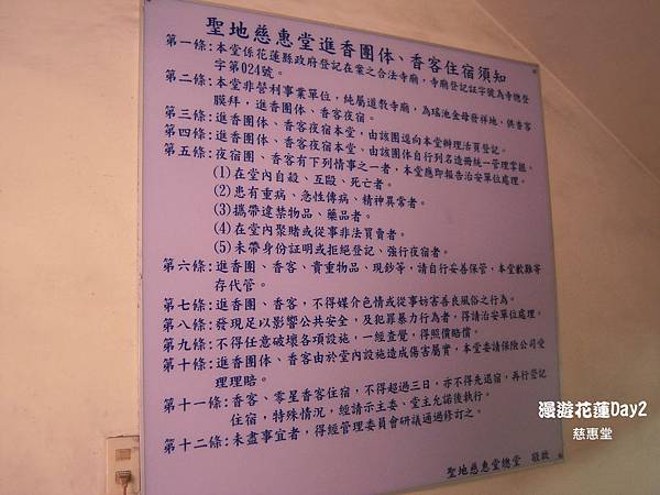 像是花蓮慈惠堂,要去住宿前還得先打電話預約呢。