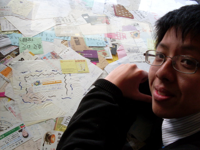 這位老兄也超認真的!去平溪看天燈還帶paper去看。