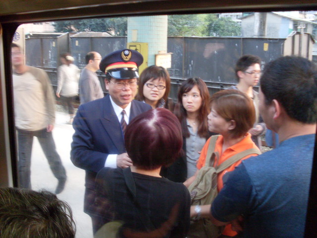 當火車進站時,外頭等車的旅客都向我們揮手致意。