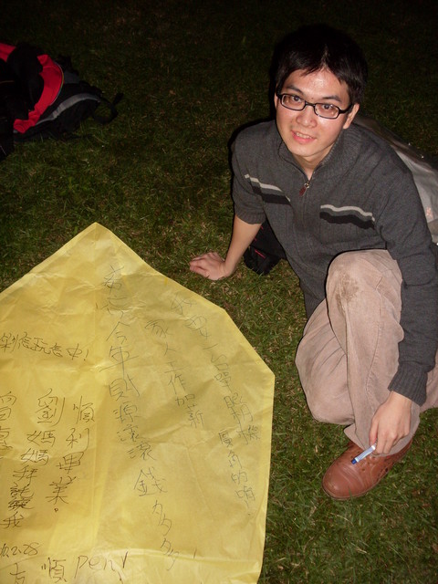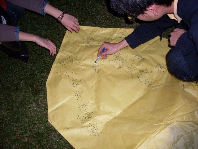 就這樣寫了兩個天燈,讓它飛上空。