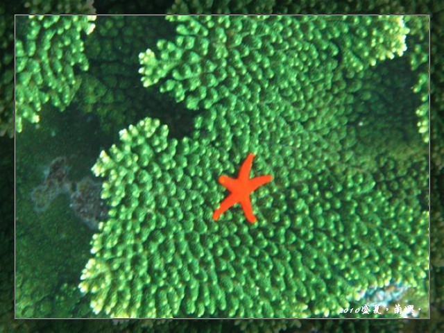 話說這位老兄,在浮淺時見到我們,於水中為了向我們打聲招呼而忘了注意前方狀況。