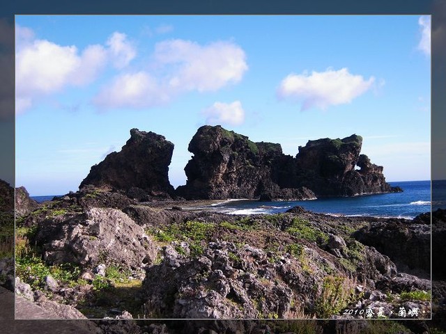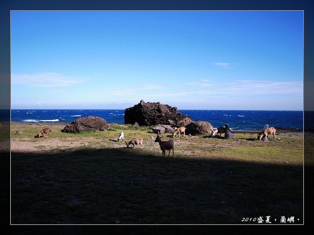 在藍天大海為背景下,搭配蘭嶼上的動物,此景顯得格外生動。