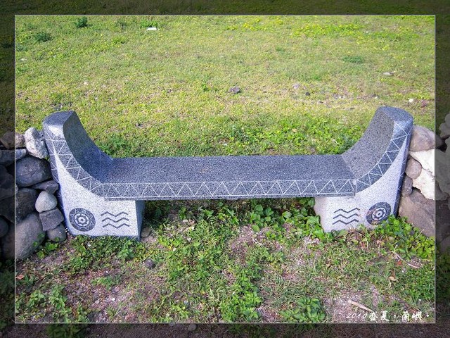 五孔洞前的椅子,將造型做成拼板舟的模樣。