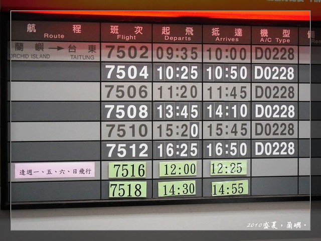 一天通往台東蘭嶼的班機不多,僅數班而已。