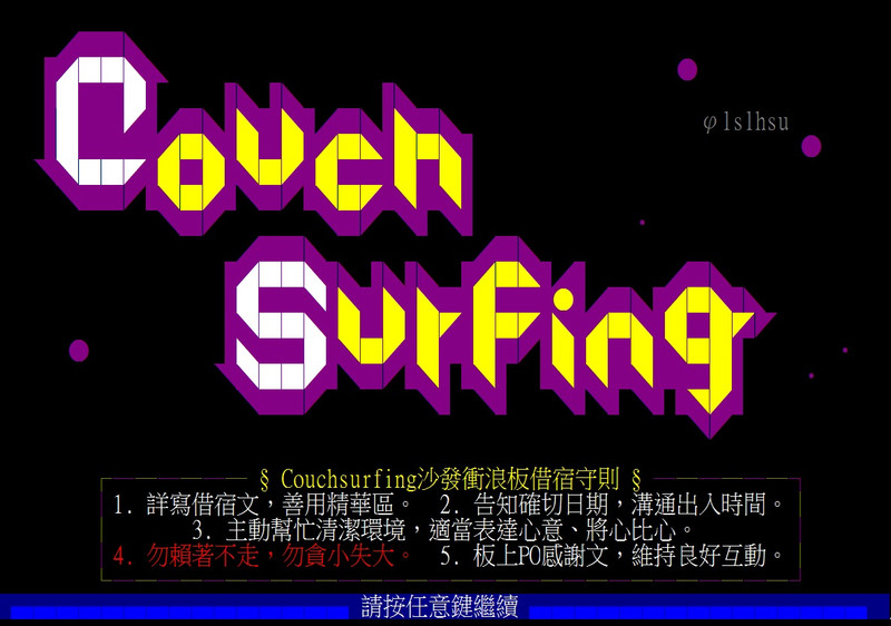(上圖轉自PTT CouchSurfing板)