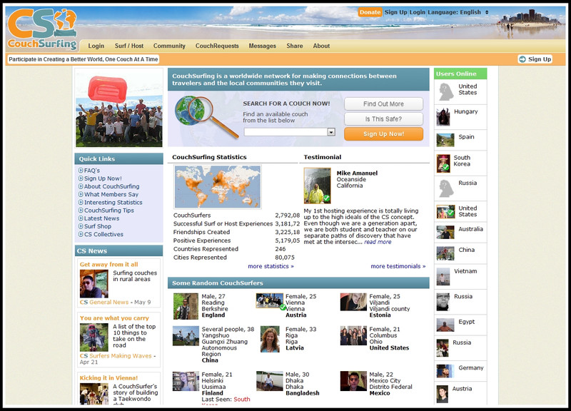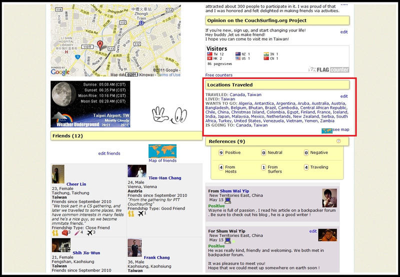以CouchSurfing官方網站來講,光台灣的沙發主/客,就將近6500位呢。