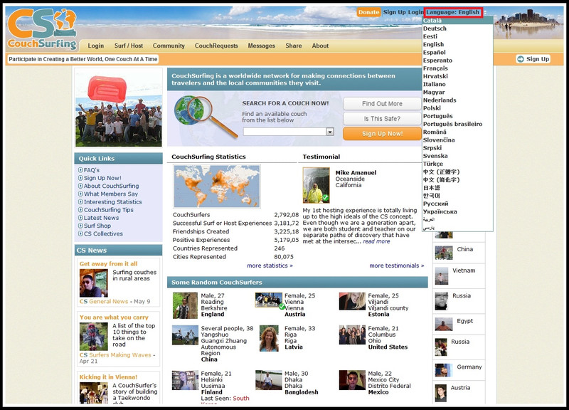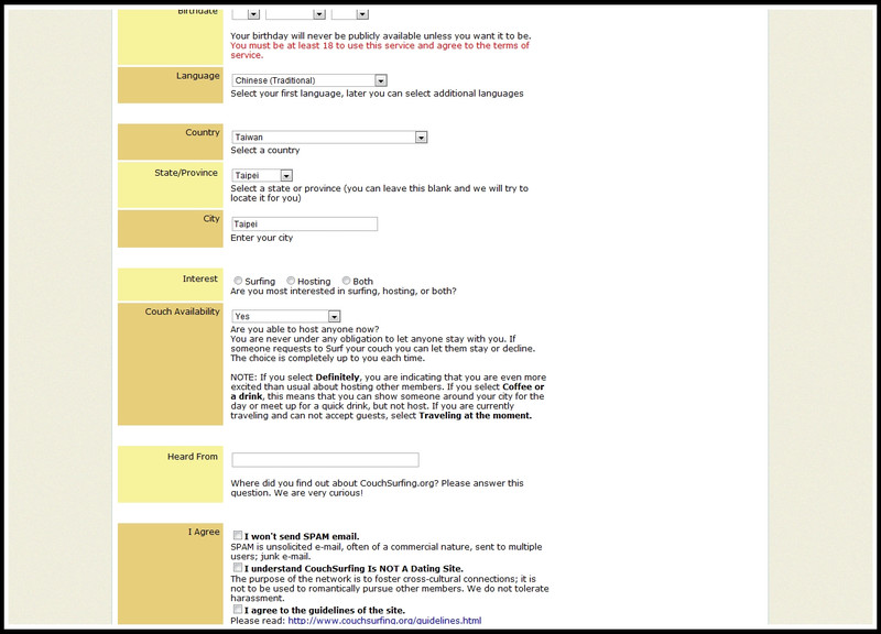 1.首先你得先成為CouchSurfing的會員,官方網站為:http://www.couchsurfing.org