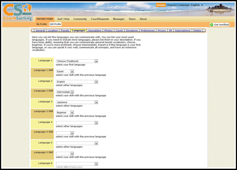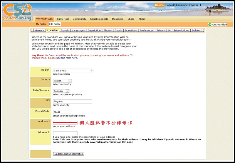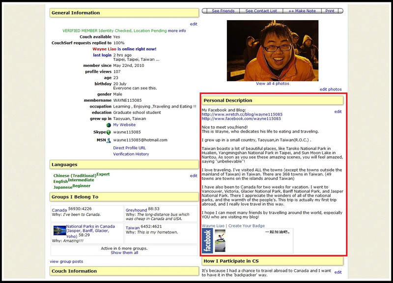 待語法都確定後,就把它貼到CouchSurfing的編輯區裡。送出後,就會顯示出像我一樣的畫面囉。