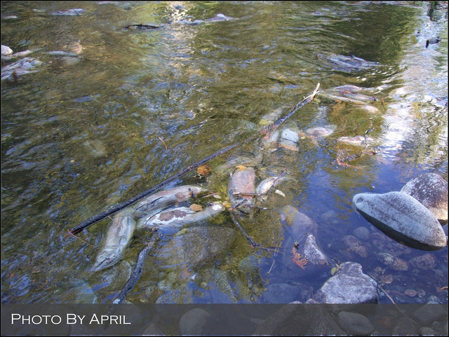回歸正題,話說2010年可是四年一度的鮭魚大迴流,一大群的紅鮭魚就在九月底陸續的往Adams River遊去。