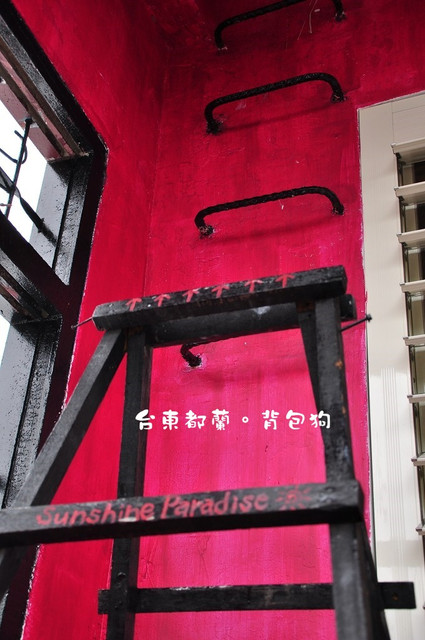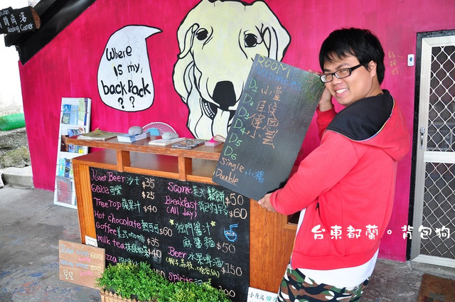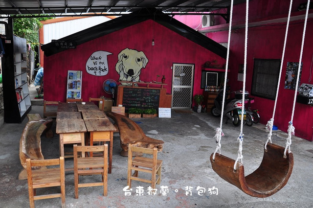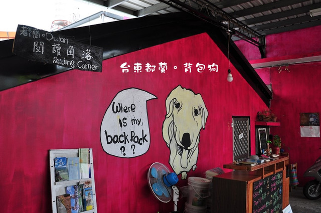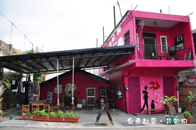 背包狗位於都蘭糖廠旁的巷子裡,十分好認。因為那是一棟超級粉紅的建築物,太明顯了。