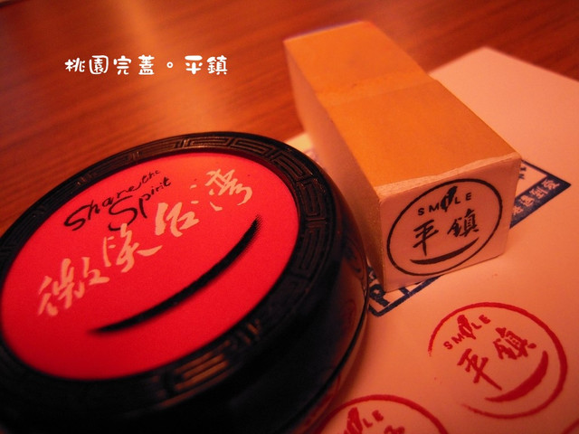 就在找章點時,我突然想起之前曾在中壢監理站對面的素寶齋蓋過外掛娜娜及微笑章,於是我們就轉陣到那吧。